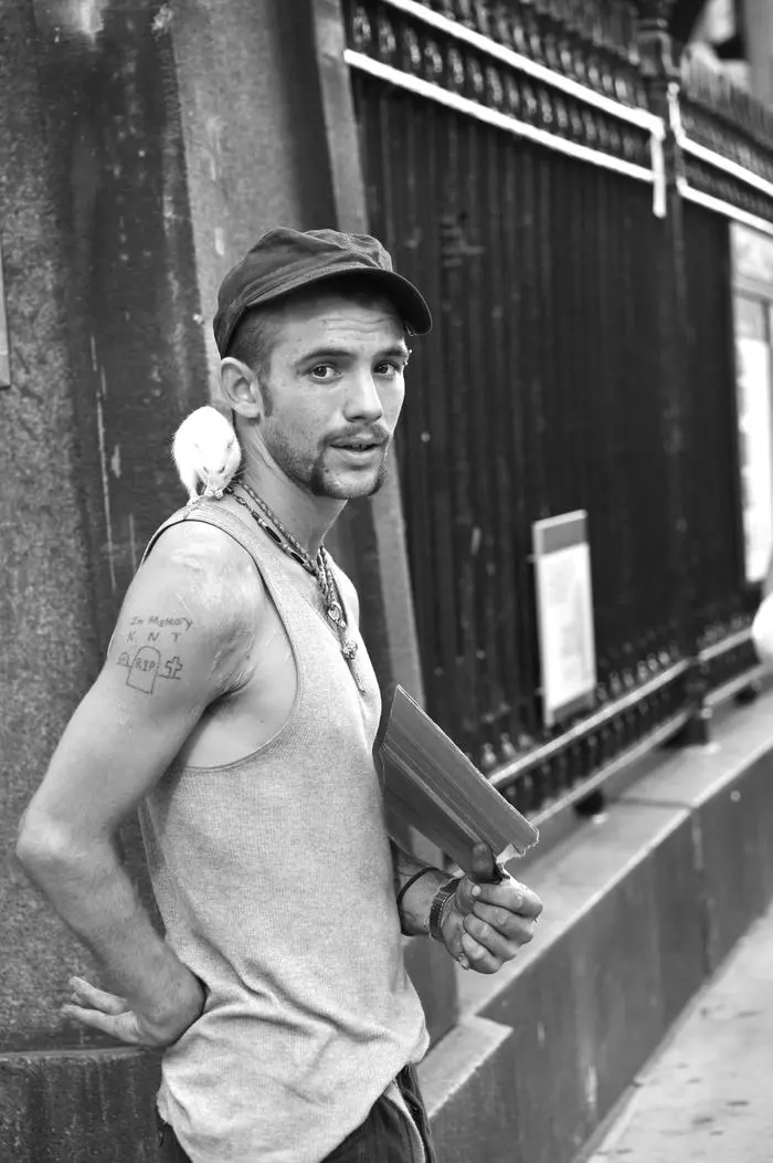 Man with a parrot on shoulder