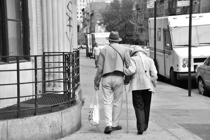 Seniors strolling arm in arm