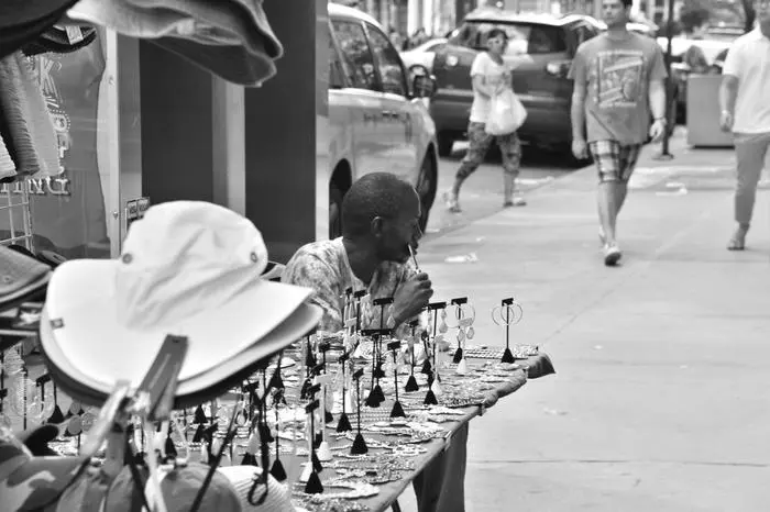Black and white urban street view