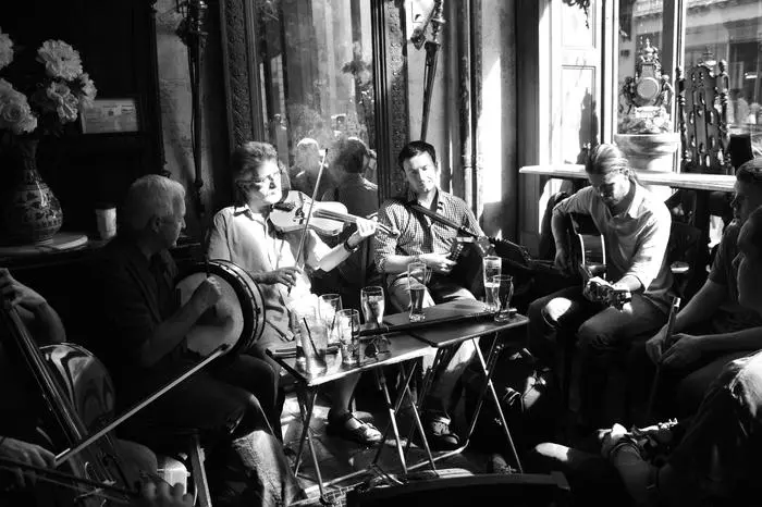 Musicians playing in a cozy pub