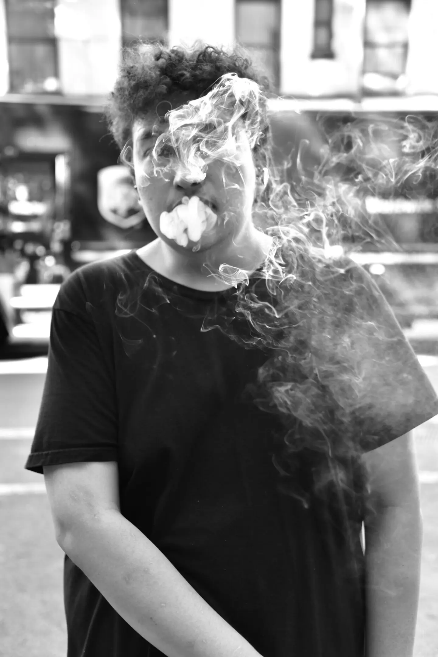 Elderly man in sunglasses lighting a cigarette outdoors.
